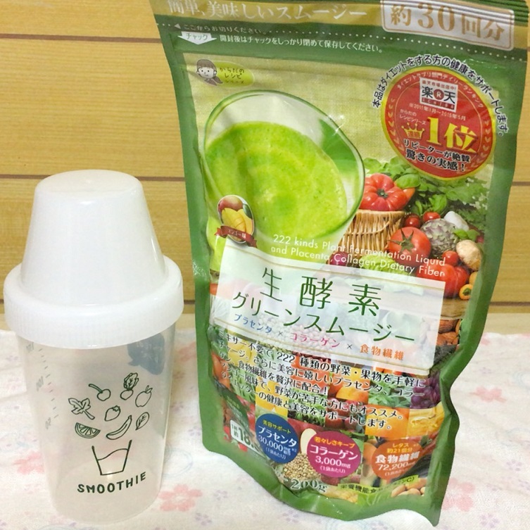 こちらは、222種類の植物発酵エキスに、美容成分プラセンタとコラーゲン、食物繊維を配合したグリーンスムージー。